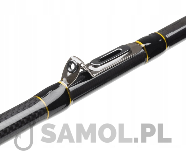 Blank wędki został wykonany z włókna węglowego, rękojeść z wysokiej jakości pianki EVA, natomiast uchwyt kołowrotka jest wzmocniony dzięki czemu mocno i pewnie go trzyma. Dolnik wędziska został przystosowany do zamontowania pasów walki.