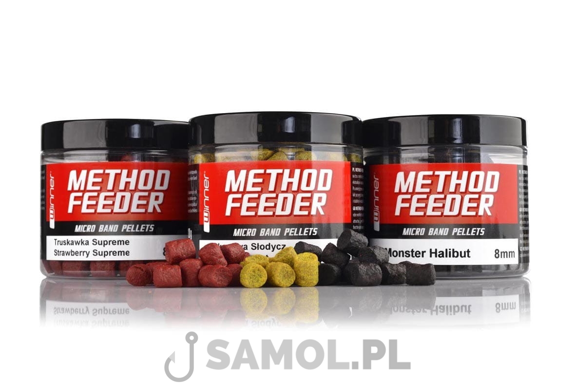 METHOD FEEDER MICRO BAND PELLETS to najwyższej jakości granulat haczykowy do połowu na tzw. method feeder, wszystkich gatunków ryb karpiowatych. Wysoka zawartość mączek rybnych i oleju, ekstraktów i naturalnych atraktorów, nadaje przynęcie niezwykle wabiący, bardzo intensywny zapach i smak. Po umieszczeniu w łowisku, w pierwszej chwili zewnętrzna warstwa częściowo rozpuszcza się, tworząc wokół przynęty chmurę stymulującą ryby do żerowania, natomiast sam pellet pozostaje odpowiednio twardy i stabilny w wodzie. Method Feeder Micro Band Pellets montuje się na włosie przy pomocy gumki.