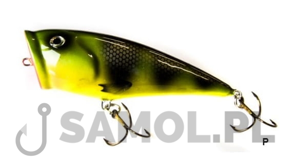 Splash Pop w kolorze SP to imitacja białorybu o srebrnym ułuszczeniu z czerwonymi akcentami. To przynęta Dorado o dość specyficznym przeznaczeniu, gdyż prowadzony nie zanurza się pod powierzchnię wody jak inne woblery, ale cały czas pozostaje na powierzchni, mocno przy tym hałasując. Popper ten stosowany jest głównie w łowiskach bardzo płytkich i mocno porośniętych roślinnością, gdzie zastosowanie innej przynęty natychmiast kończy się zaczepem. W rzekach doskonale sprawdzi się przy połowie boleni, a także pstrągi i klenie. Wobler ten ma 6cm długości oraz 10g wagi. Uzbrojony został w dwie kotwice.