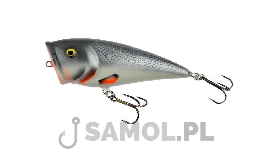 Splash Pop to przynęta Dorado o dość specyficznym przeznaczeniu, gdyż prowadzony nie zanurza się pod powierzchnię wody jak inne woblery, ale cały czas pozostaje na powierzchni, mocno przy tym hałasując. Popper ten stosowany jest głównie w łowiskach bardzo płytkich i mocno porośniętych roślinnością, gdzie zastosowanie innej przynęty natychmiast kończy się zaczepem. W rzekach doskonale sprawdzi się przy połowie boleni, a także pstrągi i klenie. Wobler ten ma 8cm długości oraz 36g wagi. Uzbrojony został w dwie kotwice.