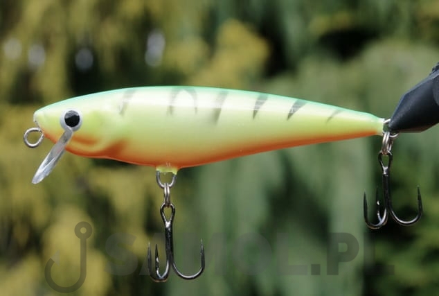 Wobler ten ma 7cm długości i 12g wagi. Pracuje na głębokości od 0,5 do 0,7m. Uzbrojony jest w dwie kotwice w rozmiarze 8.