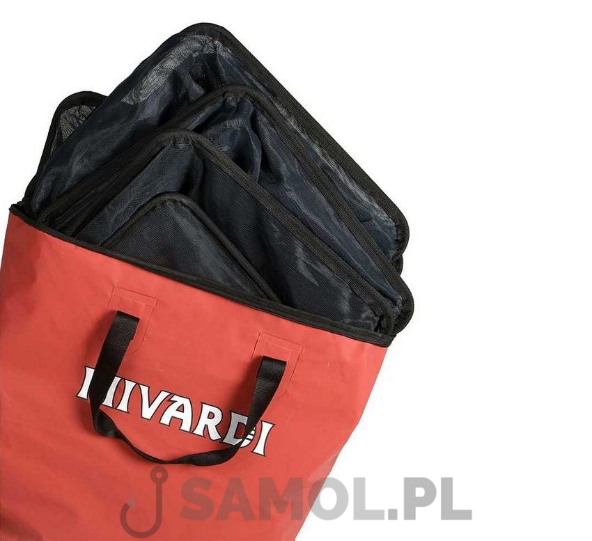 Praktyczna i wodoodporna torba na siatki Mivardi. Dzięki torbie można przewieźć mokrą siatkę, ponieważ torba jest zabezpieczona przed wyciekami z wewnątrz, a także zapobiega wydostawaniu się nieprzyjemnych zapachów, zarówno podczas przewożenia, jak i przechowywania.