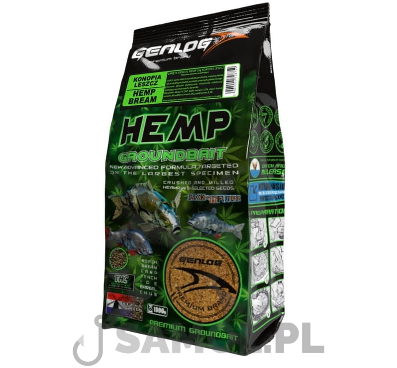 Zanęta GENLOG HEMP jak sama nazwa wskazuje ten produkt to spora dawka konopi w mieszance. Dzięki zawartości THC w konopiach działają one na ryby jak przysłowiowa "płachta na byka" silnie pobudzając i stymulując ryby do żerowania. Dodatkowo konopie posiadają właściwości przeczyszczające, dzięki czemu ryby szybciej pozbywają się przetrawionego pokarmu z organizmu, a co z tym idzie częściej wracają w nęcone miejsce. Dzięki idealnie dobranym proporcjom mieszanki i zróżnicowanemu składowi stworzyliśmy zanętę, która pozwala na łowienie różnych gatunków ryb karpiowatych. Zanęta Genlog Hemp jest to dobry wybór zarówno dla amatorów wędkarstwa jak i czynnych zawodników. Przeważająca nutka konopi sprawia, że ta mieszanka przyciąga ryby z dużej odległości.